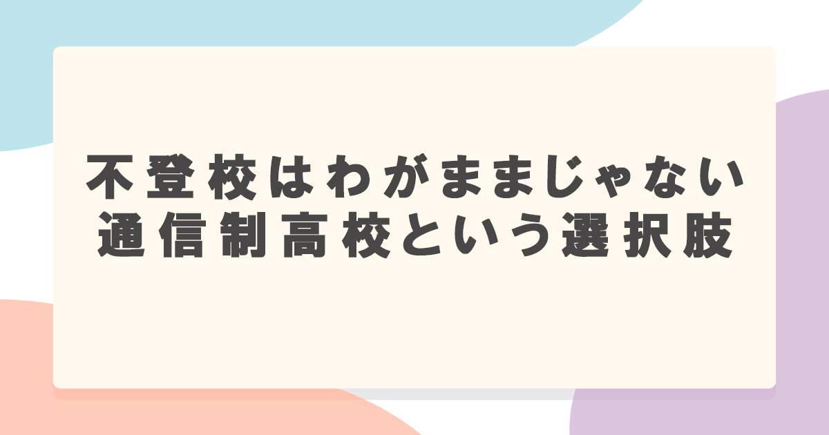 不登校はわがままじゃない|通信制高校という理解ある選択肢